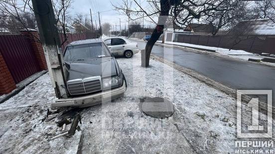 У Довгинцівському районі Кривого Рогу, на вулиці Високовольтній, Mercedes своїм правим боком зачепив електричний стовп. Постраждалих, на щастя, немає.