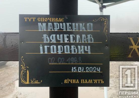 У Кривому Розі місце свого останнього спочинку знайшов військовослужбовець В'ячеслав Марченко. 5 березня 2022 року він пішов до ТЦК. З 21 березня того ж року у складі батальйону охорони Т0930 брав участь у відбитті навали окупантів під Києвом.