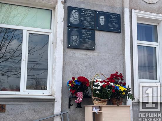 У криворізькій гімназії №63 відкрили меморіальні дошки полеглим на фронті випускникам Денису Миронову, Сергію Дмитренку та Сергію Карайвану.