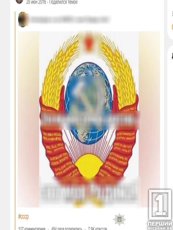 У Кривому Розі правоохоронці затримали 50-річного чоловіка, який на власній сторінці у соцмережі тривалий час постив контент з забороненою у державі комуністичною символікою. Акаунт громадянина був публічним. Про це інформують у ГУНП у Дніпропетровській області.