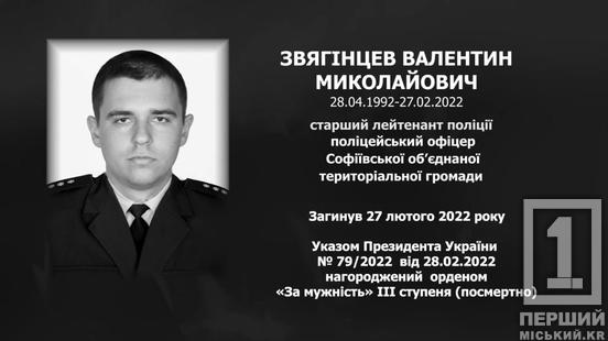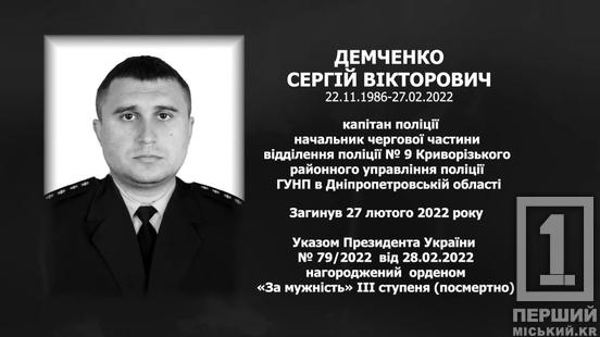 Рівно 2 роки тому, 27 лютого, обірвалося життя двох правоохоронців з Кривбасу – капітана Сергія Демченка та старшого лейтенанта Валентина Звягінцева. Вони стали першими поліцейськими з Дніпропетровської області, які загинули при виконанні службових обов’язків з початку повномасштабного вторгнення окупантів. Про це повідомляють у ГУНП Дніпропетровщини.
