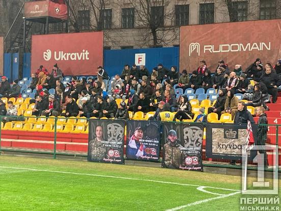 На правицях кривбасівців були чорні траурні стрічки на знак шани криворіців, які загинули 12 березня від ракетного удару.