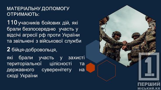 ✓ 17 дітей, які постраждали внаслідок воєнних дій та збройних конфліктів, розмір допомоги 5 тис. грн (з початку року допомогу отримали 27 дітей) та інші категорії криворіжців.