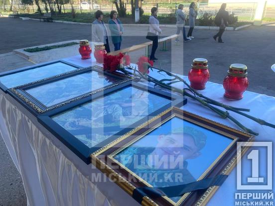 Війна вже забрала тисячі дорогоцінних життів найкращих хлопців та дівчат, для яких батьківщина виявилася «Понад усе». 8 квітня поблизу Криворізької школи №1 вшановували пам'ять полеглих Героїв, які виховувалися у цих стінах - Сергія Каверіна, Івана Козирєва, Валентина Козлова, Данила Козінчука іменними меморіалами.
