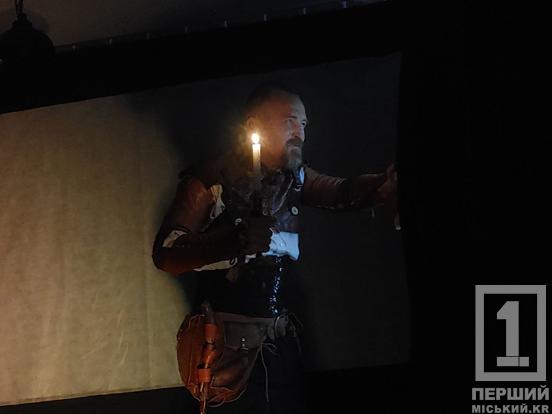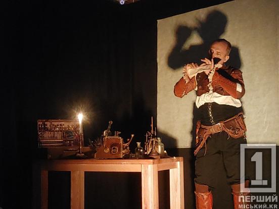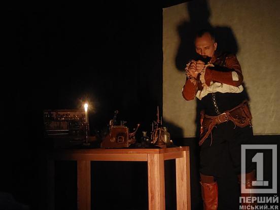 «Йде певна серія образів, які у людини в голові, або проходять непоміченими. Люди не помічають певну деталь, прив’язуються до того, що всередині знайшло відповідь. Візуальна складова перфомансу – те, що робив я, колектив, студія «Простір» на Херсонщині. Якісь елементи, атрибути, ми використовували для зйомок наших аматорських ігрових фільмів, для вистав. Є елементи, створені безпосередньо для цього перфомансу. Показ перфомансу не планувався багаторазовим. Він народжувався для одного показу. Ми були запрошені у Виставкову залу. Цей перфоманс відбувся. Його подальша доля залежить від реакції глядача. З елементами steampunk. Використовували те, що поруч. Горища, скрині бабусь, всі старі речі, які потрапляють до рук, вони цікаві, їх можна трансформувати. Вони більш-менш можуть відповідати тим чи іншим творчим задумам. Сам steampunk, інші види формотворення, вони не такі затратні», - розповів Андрій Богун, мистецький діяч, новий криворіжець, який прибув до нас з Херсонщини.