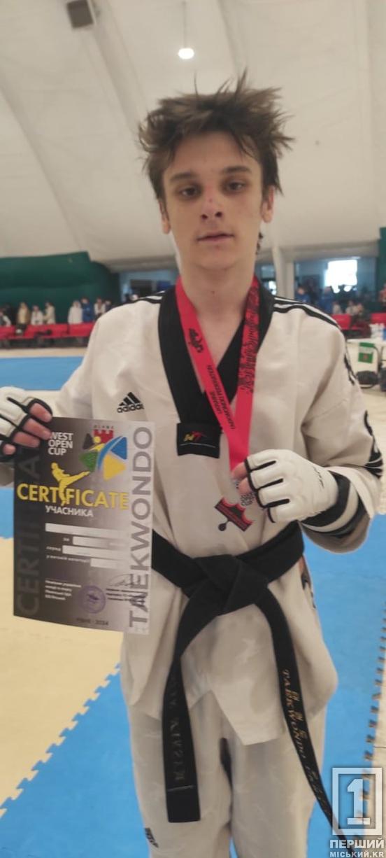 Далі переможну естафету підхопили тхеквондисти школи. У селі Колоденка проходив Відкритий всеукраїнський турнір «Західний п'єдестал», звідки підопічні Олени Мардаш привезли дві медалі: Максим Лисяк – срібло, а Кирило Абрамяк – бронзу.