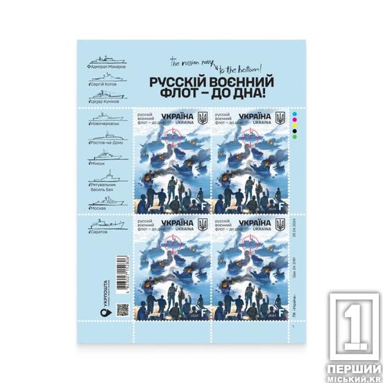Тож, ця купа слів була анонсом нового поштового блоку - «русскій воєнний флот — до дна!». Він зібрав усі кораблі, які стали для рашистів крокодилячими сльозами від початку повномасштабного вторгнення.