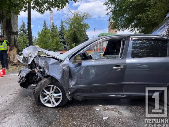 Водію стало погано: у Кривому Розі на вулиці Конституційній Skoda влетіла в дерево та спалахнула