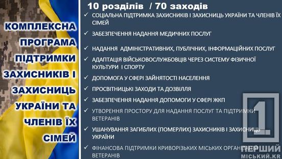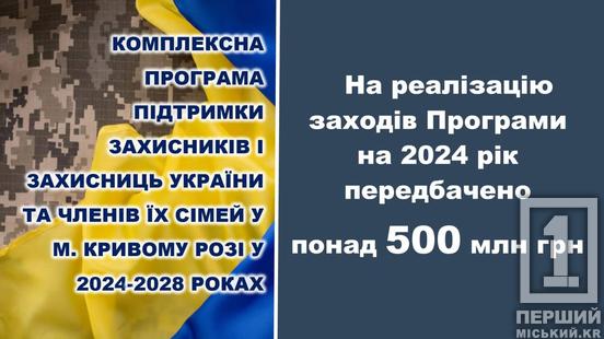 У місті реалізується Комплексна Програма підтримки захисників і захисниць України та членів їх сімей. Програма має 10 розділіврізного спрямування. На реалізацію заходів Програми на 2024 рік буде спрямовано понад 500 млн грн.