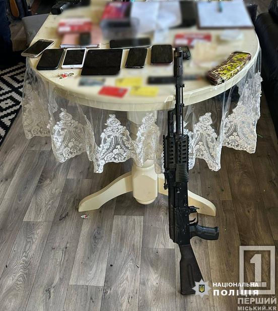 Правоохоронці в ході слідчих дій за місцями мешкання фігурантів у Кривому Розі вилучили 25 мобільних телефонів, банківські карти, комп’ютерну техніку, чорнові записи, автомат Калашникова та набої до нього.