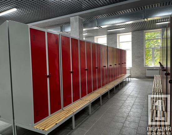 За час ремонту фахівці провели монтажно-будвельні роботи та оздоблення приміщень сучасними матеріалами. Облицювання підлоги та стін виконали у стриманому сірому кольорі з додаванням контрастних червоних смуг. На підлозі, задля безпеки працівників, використали шорстку плитку, яка запобігає ковзанню. На стелі в гардеробних змонтували підвісні секції Грильято, які відповідають вимогам пожежної безпеки і приховують комунікації. У душових та санвузлах застосували стійкі до вологи підвісні секції з алюмінійових рейок.