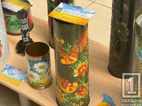 Козаки, калина, славетний петриківський розпис на відстріляній зброї: у Кривому Розі художниця Ірина Липень відкрила виставку задля допомоги ЗСУ
