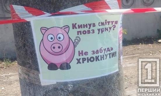 У Кривому Розі люди шоковані через «настирливих» невідомих громадян, які попри красномовне попередження на табличках «Викид сміття заборонено. Тут сміття викидають тільки свині», «Кинув сміття повз урну? Не забудь хрюкнути» продовжують паплюжити благоустрій на вулиці Транспортній. Хоча поруч стоять купа баків.