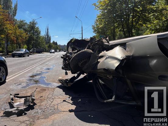 Наразі авто жахливо понівечене, а патрульна поліція фіксує всі деталі події. Рух тролейбусів та автобусів тимчасово ускладнено.