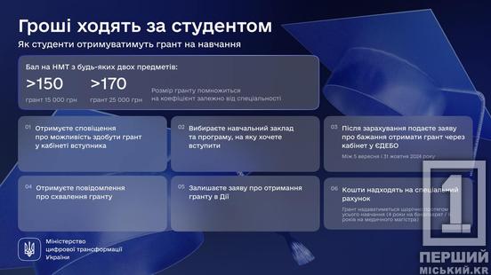 Мінцифра разом з МОН реалізовуватимуть експериментальний проєкт для студентів. Цьогоріч вперше вступники зможуть отримати державний грант від 15 тисяч гривень і більше для оплати навчання на контракті.
