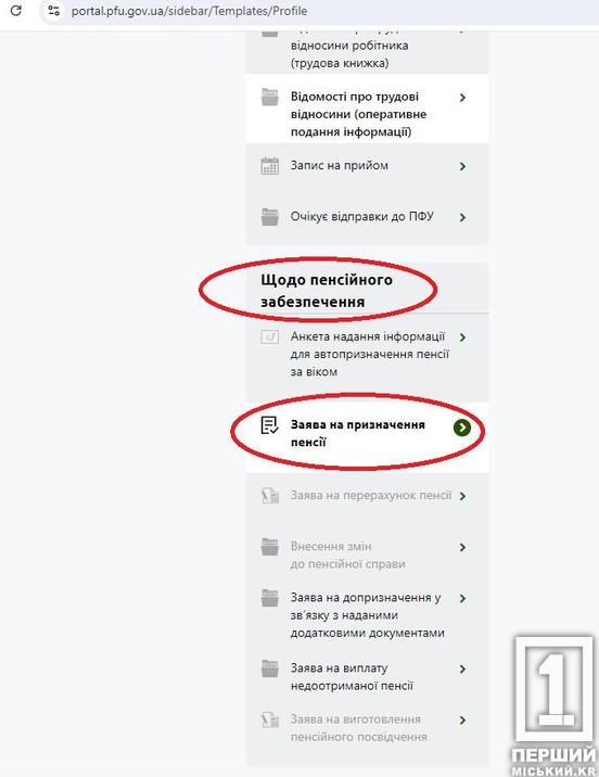 Кроки безпосередньо на сайті ПФУ: