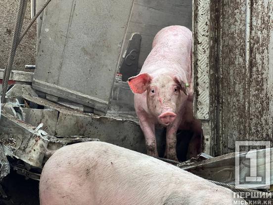 У Кривому Розі на вулиці Кобилянського сталася автотроща. Перекинулася вантажівка, яка перевозила понад 100 свиней.