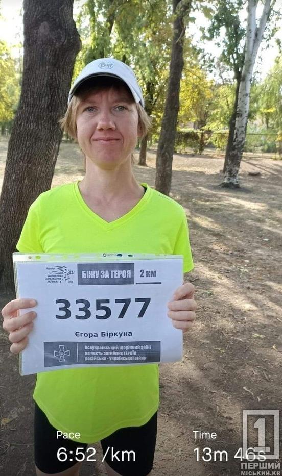 Криворіжанка з Довгинцівського району міста пробігла 2 км. Цю дистанцію вона присвятила полеглому Єгору Біркуну. Він був одним з титанів Маріупольського гарнізону.