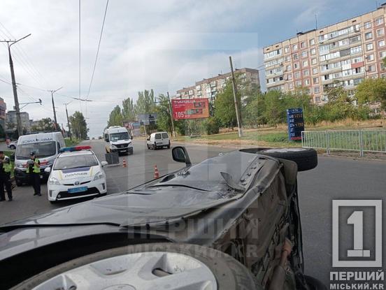 У Кривому Розі в районі «Терри» сталася ДТП з Dacia та Volkswagen. Через зіткнення перша автівка перекинулась на бік.