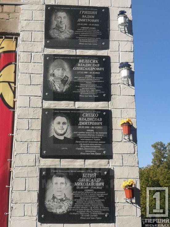 20 вересня у криворізькій гімназії №72 вшанували подвиг чотирьох випускників, полеглих на фронті за свободу і мир в Україні. Це Олександр Білий, Владислав Сипко, Вадим Гришин, Владислав Валесик.