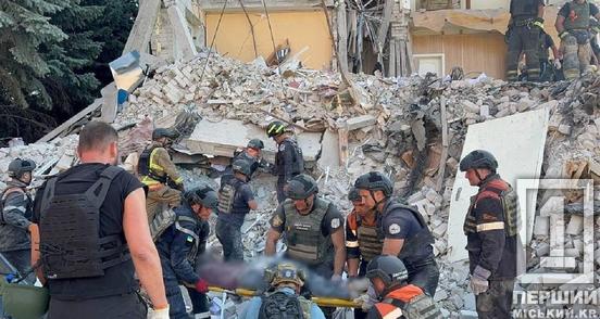 З під завалів дістали трьох працівників поліції та одну цивільну – усі загинули: завершилися пошуково-рятувальні роботи після російського удару по Кривому Рогу