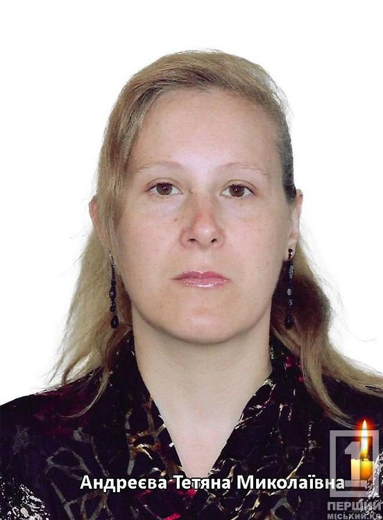 Серед жертв російського обстрілу була й Тетяна Андреєва, 42-річна цивільна працівниця. Жінка, яка щодня дбала про чистоту й порядок у будівлі Криворізького районного управління поліції.