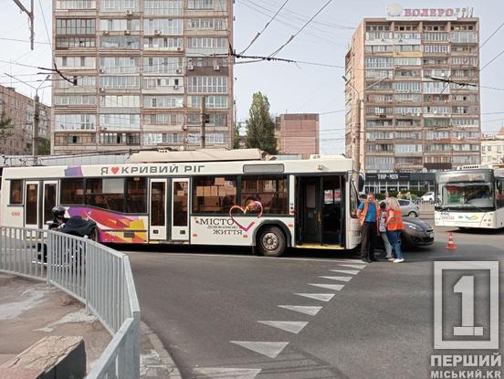 У Кривому Розі на кільці 95-го кварталу притерлися тролейбус та Renault. З людьми, зокрема, у громадському транспорті, все добре.