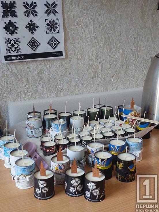 Пані Інна перетворює речі, що мали піти у забуття, на шедеври. З-під помаху її руки нове життя отримують використані ящики для патронів, гільз, інше військове спорядження. Педагог розповідає, що ці роботи - вершина айсбергу волонтерської роботи навчального закладу. Творча історія починалася з двох тубусів та ящика. У актив додалися гільзи та окопні свічки.