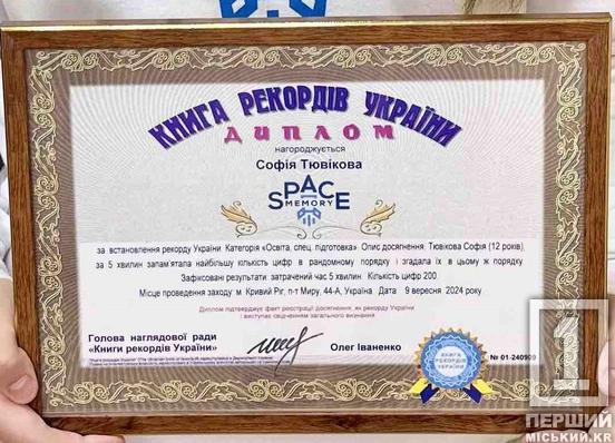 200 цифр за 5 хвилин: 12-річна криворіжанка Софія Тювікова встановила національний рекорд зі спортивного запам'ятовування
