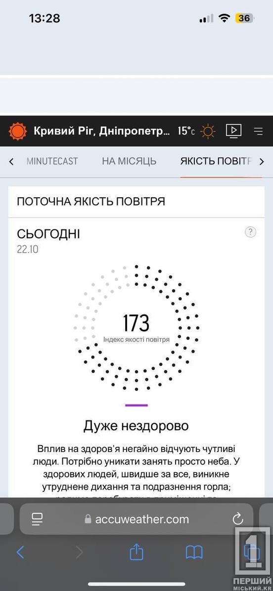 Моніторингові сайти повідомляють,що у нашому місті різко погіршився стан атмосферного повітря. Його характеризують, як дуже нездоровий, а індекс якості становить 165.