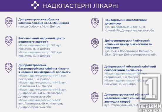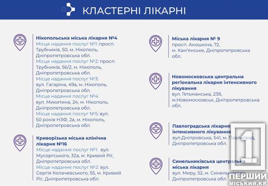 Дніпропетровський госпітальний округ складається з 7 кластерів. Криворізький у їхньому числі. Де можна буде отримати допомогу з 1 січня: