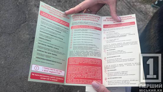 Начальник відділу управління якістю атмосферного повітря управління екології виконкому КМР Оксана Полуєхта зауважує, проводять інформаційно-роз’яснювальну роботу. Людям розповідають про те, наскільки спалювання листви небезпечне для здоров’я, шкідливо для довкілля. Через неконтрольовані пожежі можуть статися масштабніші. Рейди охоплять поступово усі райони Кривого Рогу.