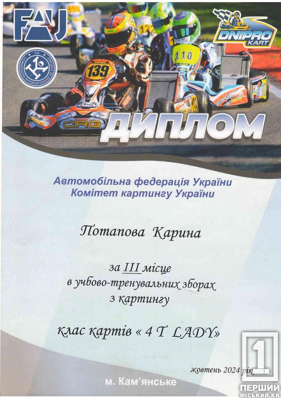 Також комітет картингу автомобільної федерації України підбив підсумки зборів цьогорічного сезону. Тут команда секції теж показала себе з кращого боку, наші спортсмени потрапили у перелік кращих учасників. Карина Потапова та Олександр Гіщин стали чемпіонами, а Владислав Конторез, Тимур Веснін та Денис Вишневський – срібними призерами.