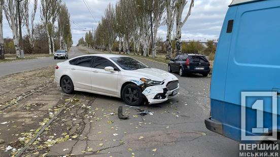 Обидві автівки рухалися Святогеоргіївською вулицею в напрямку Миколаївського шосе. У правій смузі їхав синій Mercedes, а в лівій – Ford. У певний момент бус пішов на розворот, тоді йому в бік і «прилетів» удар.
