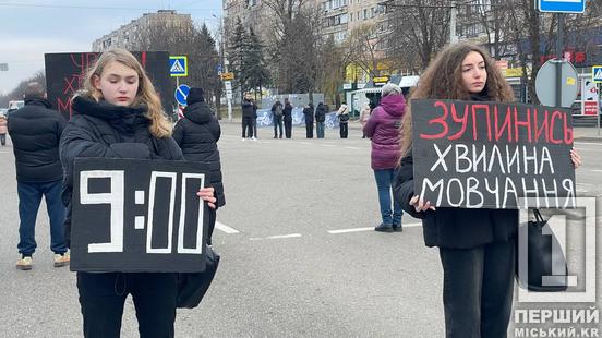 У Кривому Розі на Ювілейному містяни зібралися на нову хвилину мовчання. Небайдужі зупинили все оточуюче аби нагадати – війна триває.