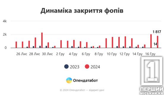 22,5 тисячі ФОПів були вимушені припинити роботу після підписання президентом закону про підвищення податків. В цілому, кількість закриттів сягала 1 000+ щодня. А 29 листопада, коли на документі з’явився підпис голови держави, було 2 332 ліквідованих бізнеси. Про це повідомляють аналітики «Опендатабот».