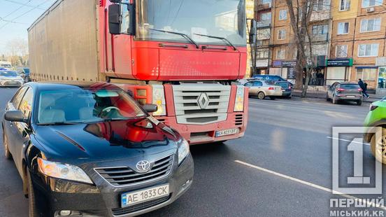 У Кривому Розі на проспекті Миру у дорожньо-транспортну пригоду потрапили Toyota та фура Renault. Обійшлося без постраждалих.