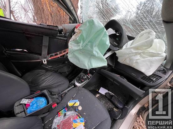 За попередніми даними водій Hyundai прямував від ЦГЗК у напрямку вул. Небесної Сотні та втратив керування над автівкою. Як наслідок, вилетів у кювет і врізався у дерево.