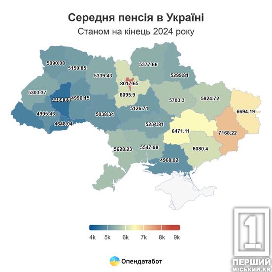 Наразі в Україні 10,34 млн пенсіонерів. 26% з цієї кількості отримують пенсії менше 3 000. Більше, традиційно, платять у Києві людям поважного віку - 8 017,65 грн. Найменше – на Тернопільщині. Тут 4 484,69 грн. На Дніпропетровщині фіксується 6 471,11 грн.
