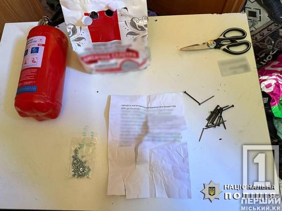 «Під час обшуку із залученням вибухотехніків поліції Київщини у кімнаті, де проживають фігуранти, виявлено та вилучено два кілограми вибухової порошкоподібної речовини, виготовленої із побутових хімічних засобів, вогнегасник, який мав слугувати контейнером, металеві болти та цвяхи, мобільний телефон із перепискою з куратором та аркуш паперу з інструкцією по виготовленню вибухової речовини», - додають у НПУ.