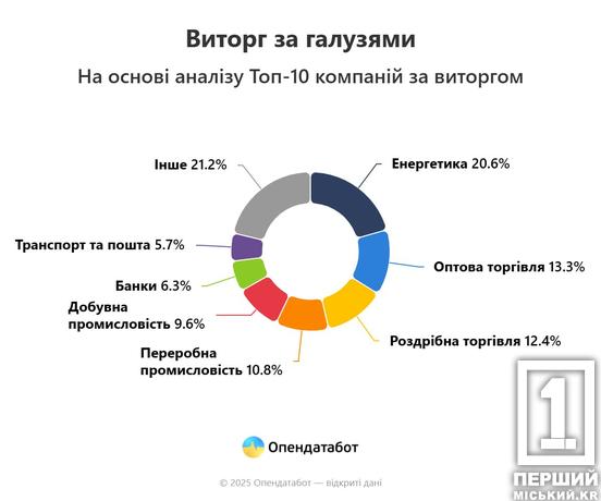 В «Опендатабот» опублікували аналітичний матеріал, який стосується реального становища та географії українського бізнесу. Найбільше за 2024 рік заробила сфера енергетики. На неї прийшовся 21% від загального доходу усіх галузей або 876,9 млрд.