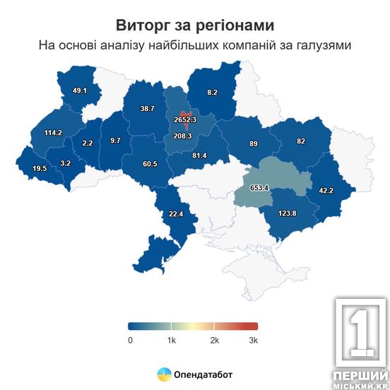 Найбільше заробив бізнес з реєстрацією у Києві - 2,6 трлн грн. На другому місці опинилася Дніпропетровщина - 653 млрд грн. Завершує трійку Київська область, без столиці, з показником 208,3 млрд грн.