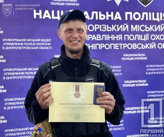 Мужність, відданість та професіоналізм криворізького поліцейського В'ячеслава Гуменюка відзначили на найвищому державному рівні. Його удостоїли почесної відзнаки Президента «За оборону України».