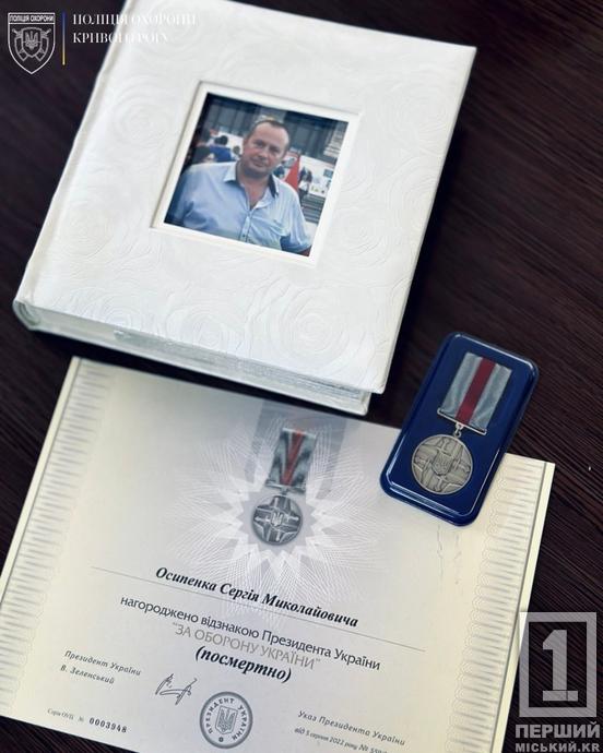 Любов до батьківщини жила в його серці: криворізького поліцейського Сергія Осипенка посмертно удостоїли відзнаки Президента «За оборону України»