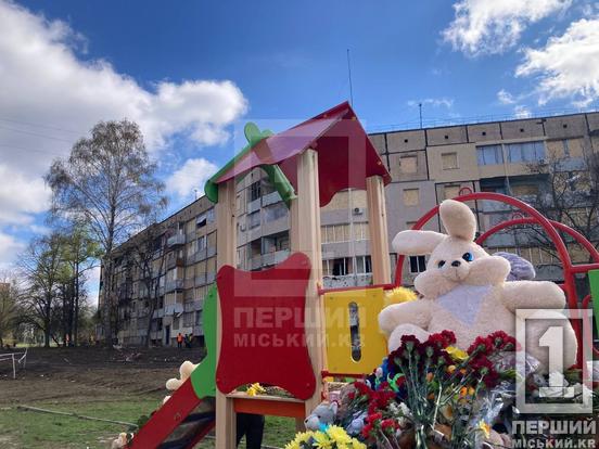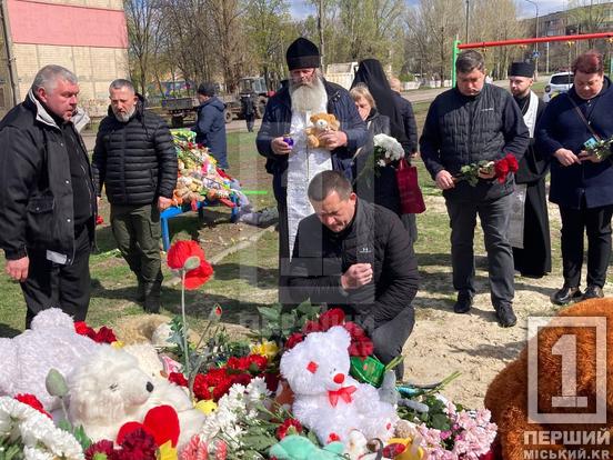 Згорьовані криворіжці, представники духовенства та місцевої влади зібралися біля дитячого майданчика, який ще зовсім недавно був сповнений дитячого сміху. Тепер він став символом безжальної російської агресії та невимовного людського горя. тут окупанти позбавили життя одинадцятьох дорослих і дев'ятьох дітей.