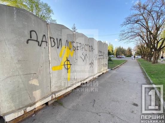 У Кривому Розі на вулиці Романа Шухевича (кол. Мусоргського) вандали знову вдалися до «творчості» на вуличному укритті, яке слугує сховком від обстрілів. Вони розмалювали чорною фарбою стіни.