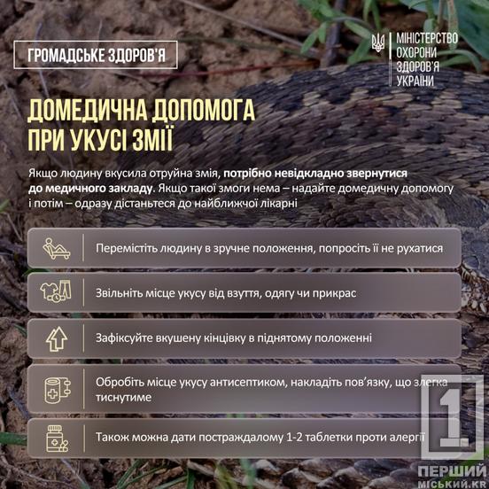 Щоб мінімізувати ризик зустрічі з отруйними зміями, фахівці МОЗ рекомендують дотримуватися простих правил безпеки: