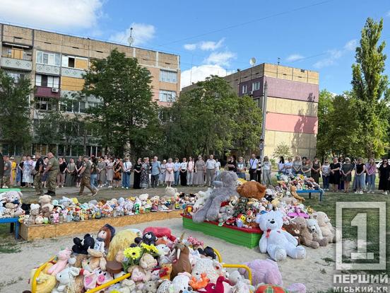 У день вшанування невинних маленьких жертв рідні та близькі загиблих малюків і підлітків, сусіди, просто небайдужі криворіжці та представники міської адміністрації прийшли до майданчика. Вони принесли квіти та іграшки, згадуючи тих, кому так і не судилося подорослішати.