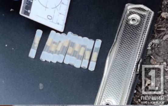 Крім того, правоохоронці оглянули територію, звідки цей криворіжець прийшов. І не дарма, адже знайшли пачку з-під цигарок, у якій знаходилися десять прозорих трубочок, запаяних з обох боків, з кристалічною речовиною жовтого кольору, схожою на наркотичну.