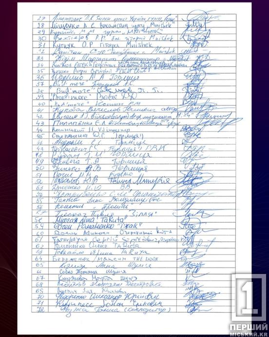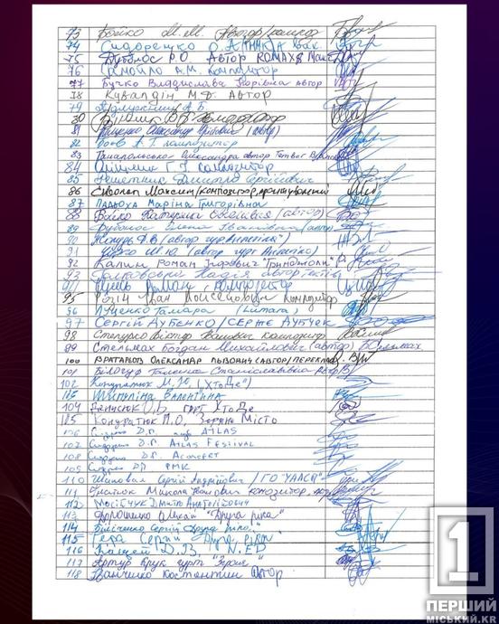 Заяву у формі відкритого листа підписали 150 представників українського шоу-бізнесу, в тому числі лідер гурту «Антитіла» Тарас Тополя, заслужений артист України Арсен Мірзоян, співак з гурту «Танок на майдані Конго» (ТНМК) Олег «Фагот» Михайлюта, представники гурту «Друга ріка» та інші.